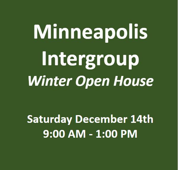 Minneapolis Intergroup will be holding their “Winter Open House” on Saturday December 14th from 9:00 AM – 1:00 PM at the Intergroup Office located at 7204 West 27th Street, Suite 113, St. Louis Park MN.