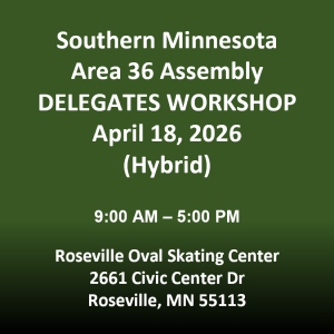 The next Area 36 Assembly meeting and Delegates workshop will be held on Saturday April 18th from 9:00 AM to 5:00 PM. This will be a hybrid meeting and will be held to gather feedback from the groups for our Delegate to take to the General Service Conference happening April 26th – May 2nd in New York.
