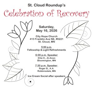 05/16/2026 – St. Cloud Roundup’s “Celebration of Recovery” Event April 7, 2026April 16, 2026District 14 Area 36 The flyer for this event is available here –> Flyer Like Loading... Related